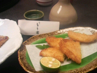 写真は揚げ物、ふぐ二種一夜干しのフライと